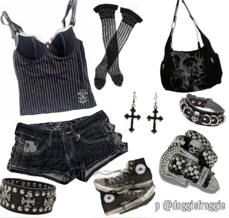 My dark aesthetic current inspo. Fun, takes a bit of inspo from the past two decades. Graphic tees, skirts or shorts, camis. The occasional mix of feminine base within an outfit and masculine coverings like jackets and boots. ❦˚₊· ͟͟͞͞➳❥